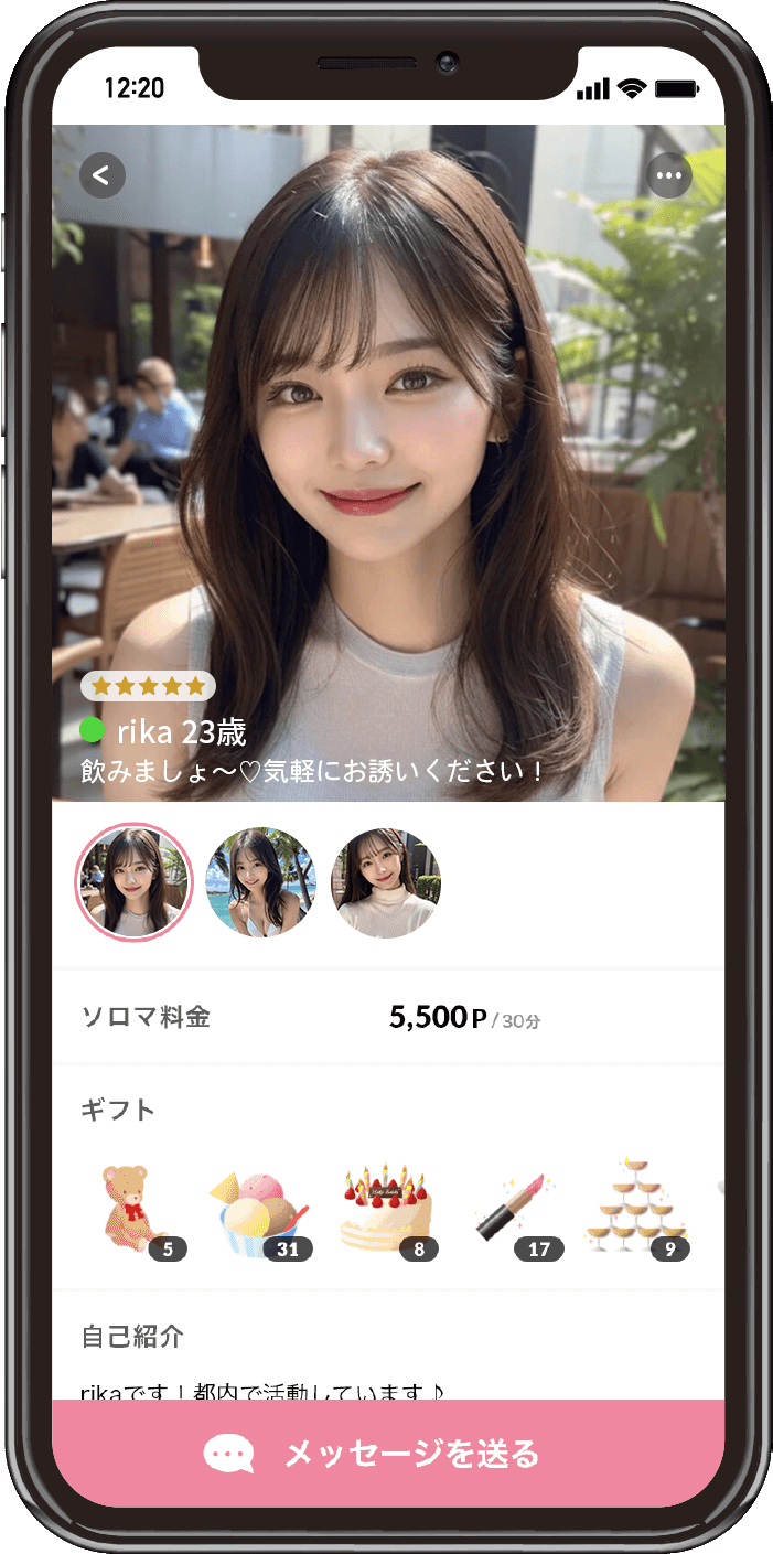 タイプのキャストとメッセージでやりとり個別で予定を合わせて会える
