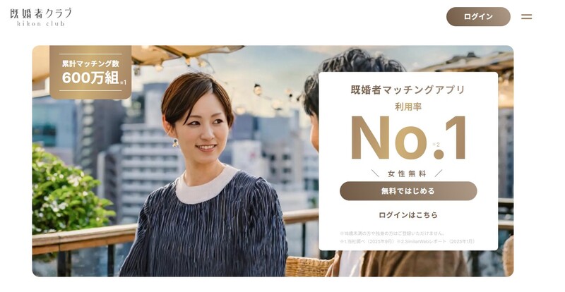 既婚者クラブは、既婚者同士の出会いに特化したマッチングサービスです。純粋なパパ活サービスと違い、恋愛関係やセカンドパートナーを求める人に利用が目立ちます。