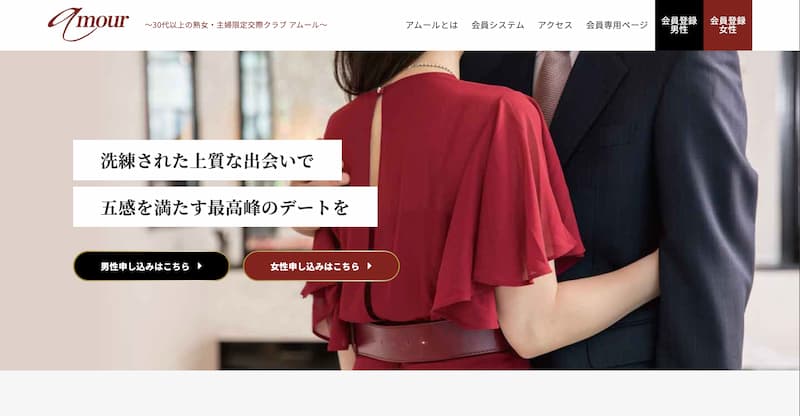 amours(アムール)は、30代以上の熟女・主婦が登録している交際クラブです。