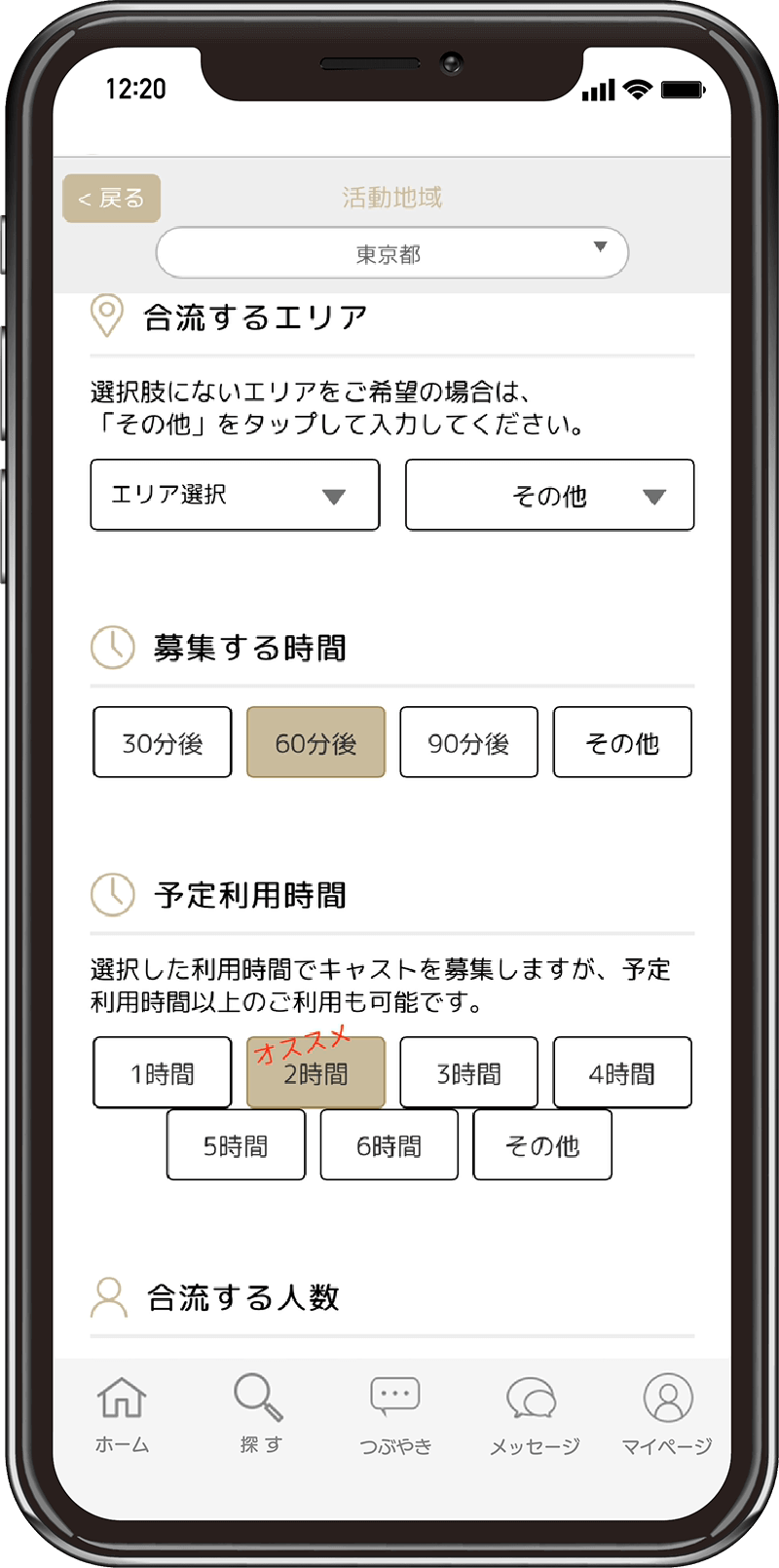 「場所」「時間」「人数」「クラス」を決めるだけ