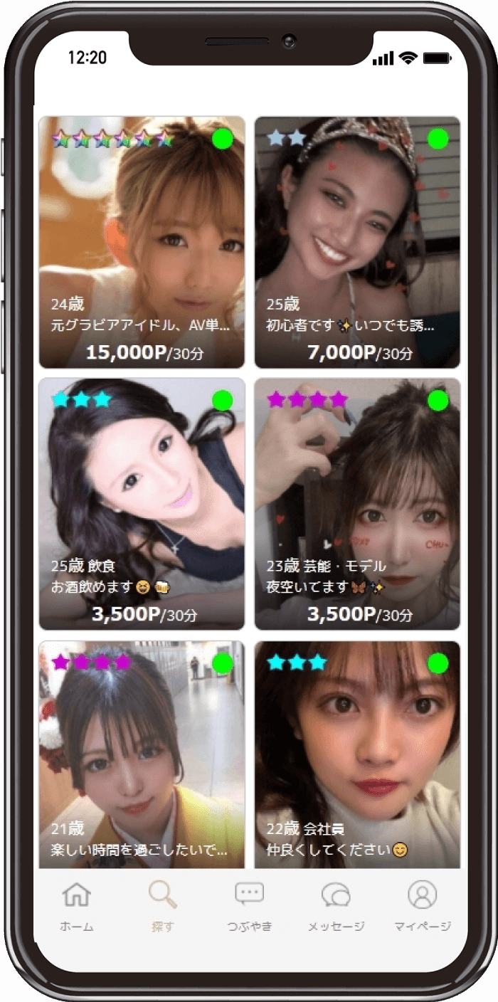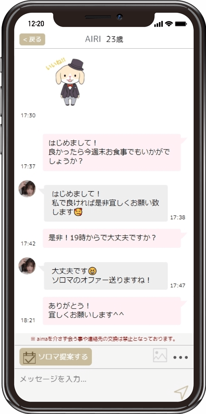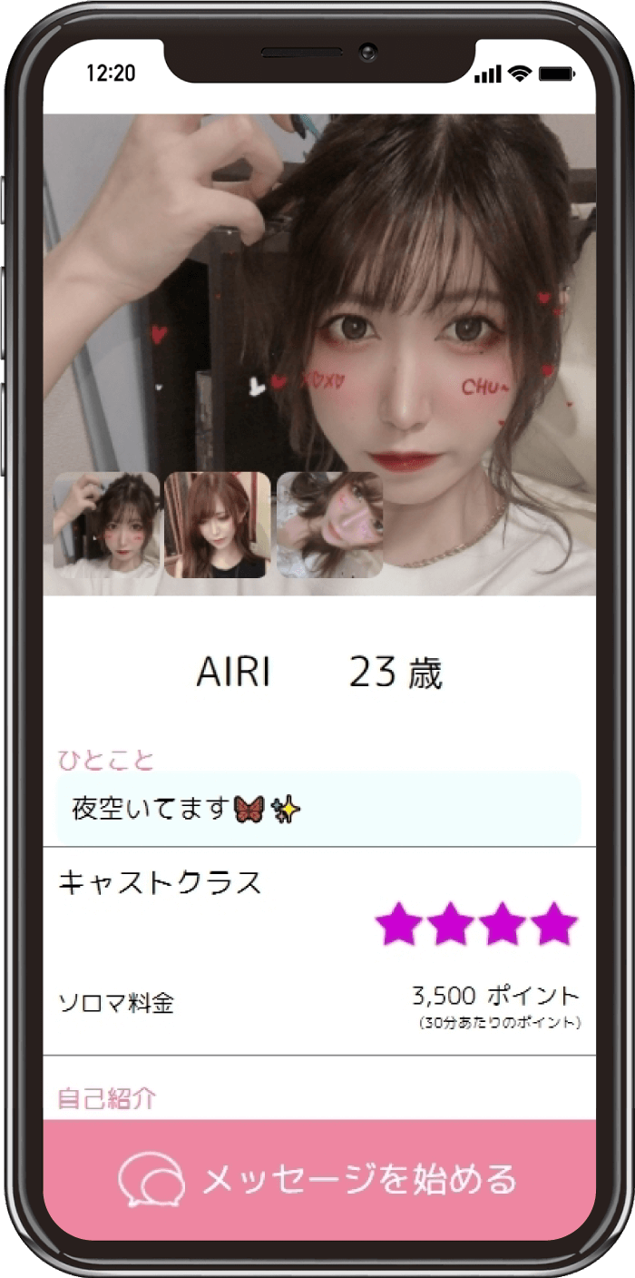 1対1で会いたい、キャストを選びたい場合にオススメタイプのキャストとメッセージでやりとり